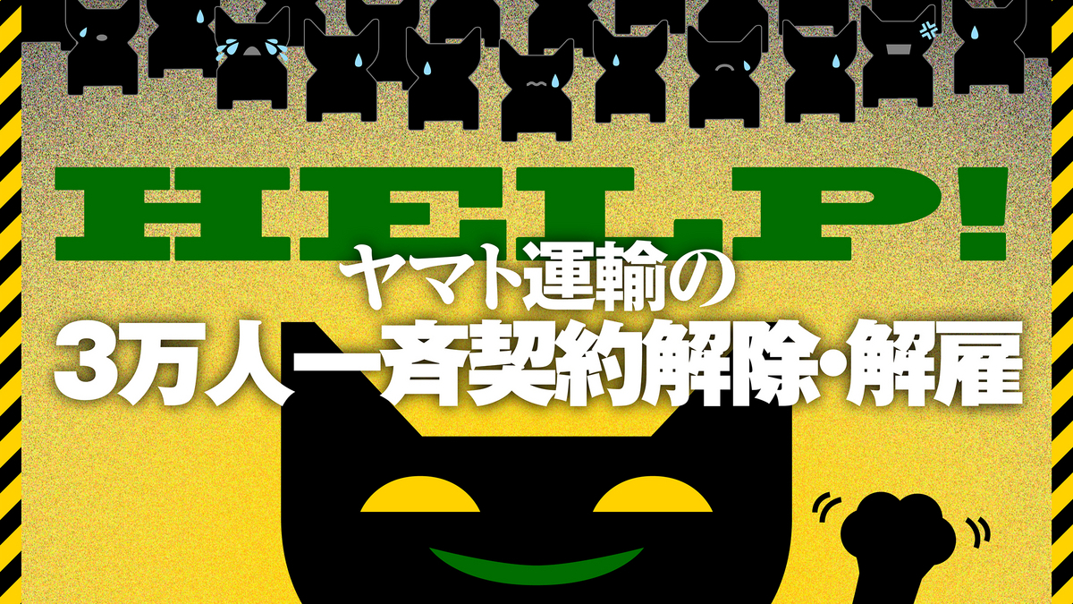 すでに一部の報道などでご存知の方もいらっしゃるかと思いますが、2024年1月31日をもって、全国で約3万人のネコポス・クロネコDM便の配達員の個人事業主が、ヤマト運輸の都合により一斉に契約解除されようとしています。またそれと同時に、クロネコDM便の仕分け作業に従事している、パート社員(数千人規模と推定)も解雇を通知されています。